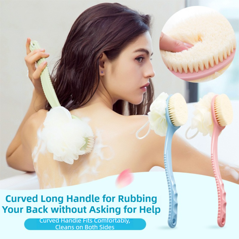 - Ergonomic Long Handle: The extended plastic handle (approx. 36 cm long) is designed to be non-slip and easy to grip, providing leverage to scrub your back and legs without straining.