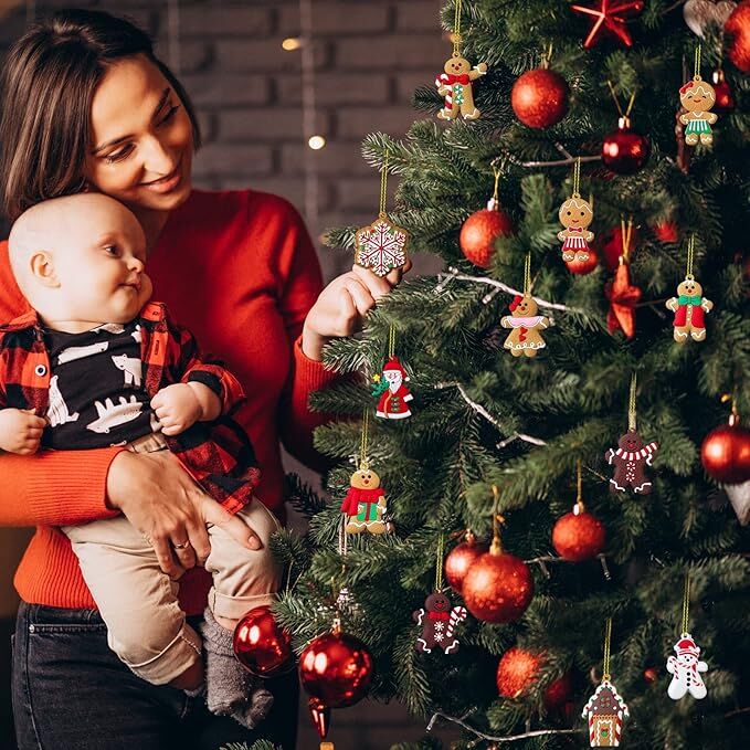 - CHRISTMAS ORNAMENT SET: Contains 24 cute little cookie men, Santa, snowman, snowflakes and candy cookie house, each with a golden string for easy hanging. Choose from a variety of cute and fun patterns to add a Christmas spirit to your home.