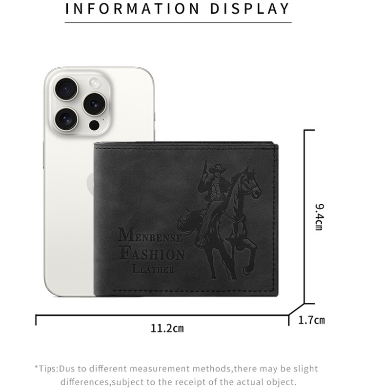 Discover the perfect blend of vintage charm and modern functionality with our Menbense Fashion Leather Wallet Set. This stylish short wallet features a distinctive hunter-riding-horse design, making it a unique accessory for any man.