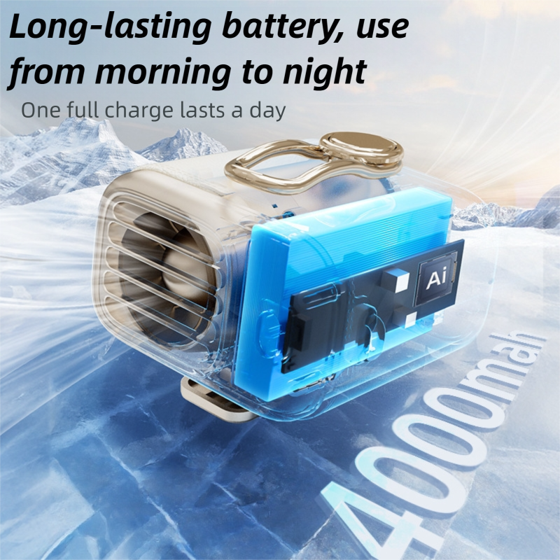 - 3-in-1 Design: Easily converts between three modes: Waist Clip for hands-free cooling, Bag Clip/Handheld for instant relief, and Desktop Stand for office or home use.