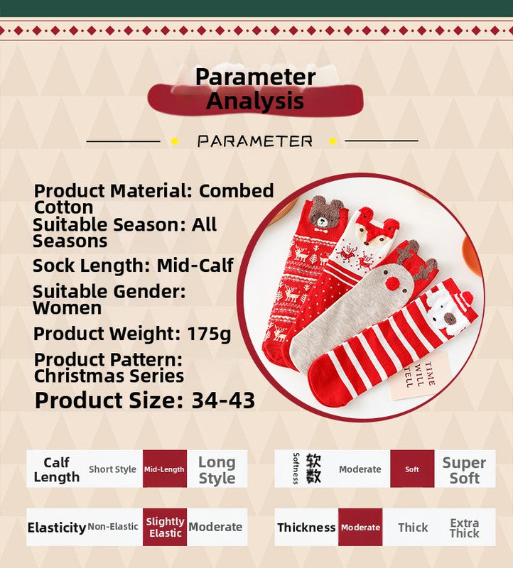 Christmas gift Christmas Socks Combed Cotton 4 Pair Medium Socks Gift Box