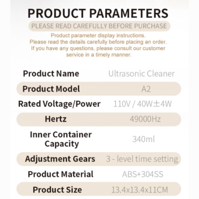 | Cleaning Modes | 3 Time Modes 180s / 300s / 600s |