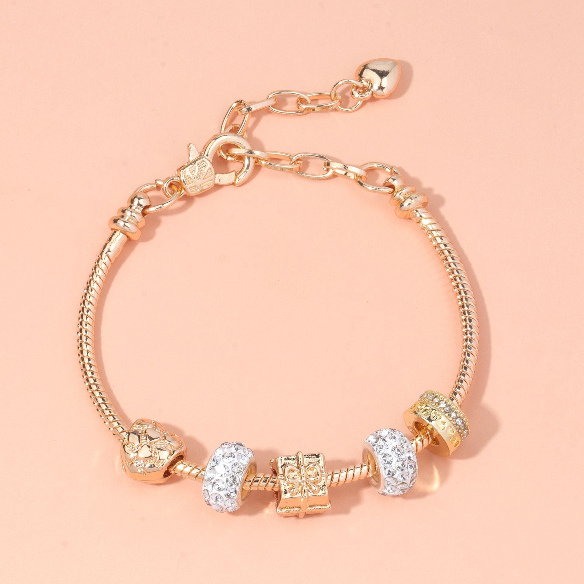 1. Stylish Design: Features rose gold tone, crystal-embedded beads, a heart bead, and a gift box bead for a fresh and sweet look.