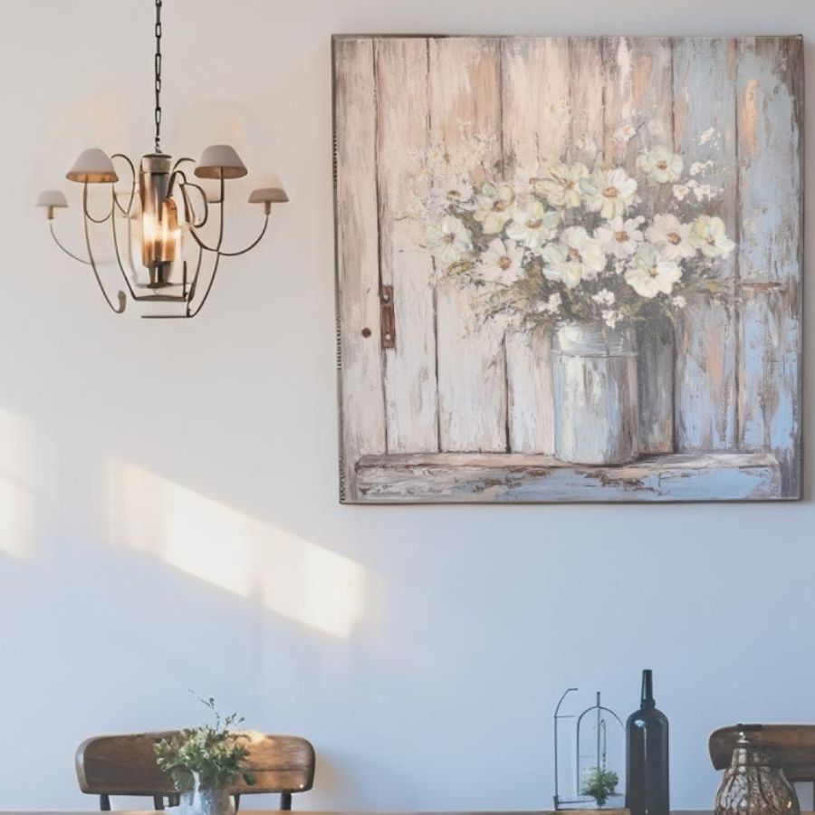 White Flowers Scene On Canvas Oil Painting Wall Art 56cm